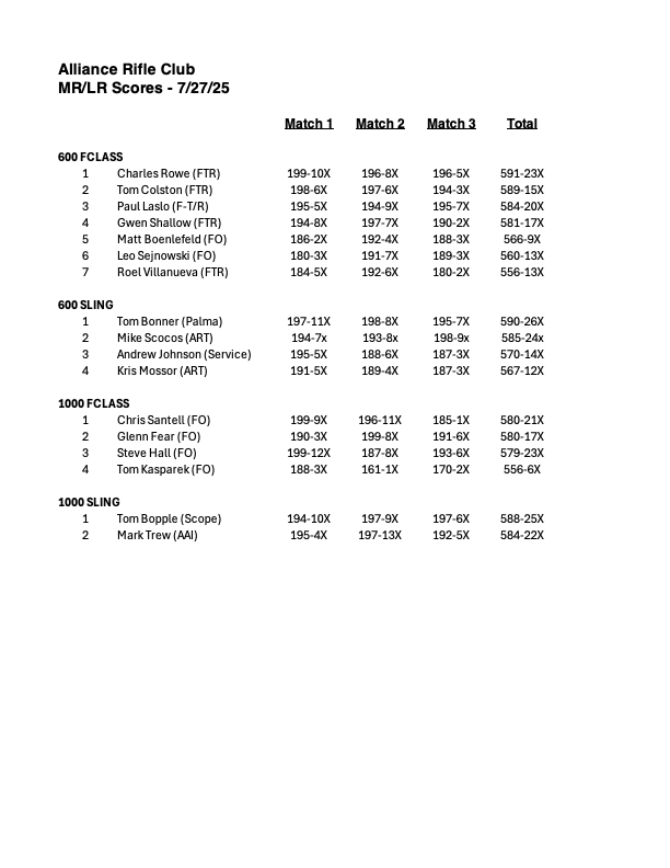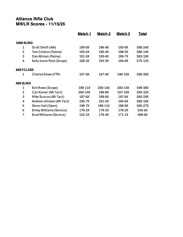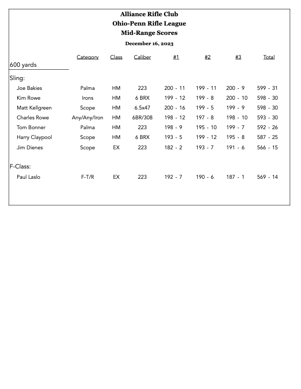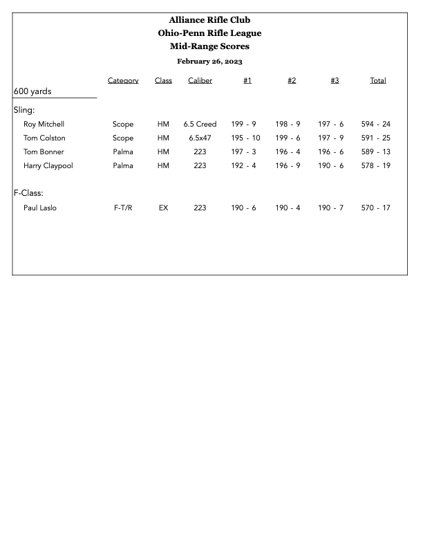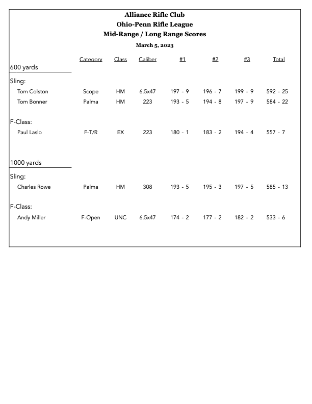 Scores 2025 MRLR_2025_11_15Download MRLR_2025_11_08Download MRLR 2025_11_02Download MRLR_2025_10_18Download Palma_2025_10_12Download MRLR_2025_10_5Download MRLR_2025_10_4Download MRLR_2025_09_27Download MRLR_2025_09_21Download ARC Club Championship 2025_09_20Download MRLR 2025_09_14Download Palma 09_13_25Download ATC_2025_08_24Download ATC_2025_07_19Download MRLR 2025_07_27Download MRLR 2025_05_18Download Palma 2025_05_17Download MRLR_2025_5_10Download MRLR 2025_04_05Download MRLR 2025_03_29Download 2024 MRLR 2024_11_16Download MRLR 2024_11_9Download MRLR 2024 11 03Download Palma 2024 11 02_SM2Download MRLR 2024 10 27Download MRLR 2024 10 06Download MRLR 2024 10 05Download IMG_6480Download MRLR 2024 09 22Download Palma 2024 09 21Download ATC 2024 09 07Download MRLR 2024 08 25Download ATC 2024 08 24Download MRLR 2024 07 28Download MRLR 2024 07 27Download MRLR 2024 07 20Download ATC 2024 07 14Download MRLR 2024 07 07Download MRLR 2024 07 06Download ATC 2024 06 16Download palma-2024-06-15Download mrlr-2024-06-09Download mrlr-2024-06-08Download buckeye-cmp-vintage-sniper-match-1Download buckeye-cmp-xtc-2-man-team-matchDownload buckeye-xtc-2-day-agg-2024Download eic-2024-05-26-no2Download eic-2024-05-26-no1Download buckeye-xtc-1000-agg-2024Download mrlr-2024-05-18Download mrlr-2024-05-11Download atc-2024-04-28Download oh-offhand-championshipDownload atc-2024-04-21Download mrlr-2024-04-14Download 22-long-range-2024-04-13Download wood-gun-2024-04-13Download mrlr-2024-04-07Download palma-2024-04-06Download atc-2024-03-16Download mrlr-2024-03-02Download mrlr-2024-03-03Download 2023 mrlr-2023-02-26Download mrlr-2023-03-05Download mrlr-2023-04-08-1Download mrlr-2023-04-15Download palma-2023-04-16Download mrlr-2023-04-23Download palma-2023-04-30Download atc-2023-03-26Download atc-2023-04-29Download mrlr-2023-05-06Download mrlr-2023-05-13Download atc-2023-05-07Download fullbore-2023-05-14Download buckeye-xtc-1000-aggDownload eic-2023-05-28Download buckeye-fullbore-2023-final-grand-aggDownload eic-2023-05-29Download buckeye-xtc-3-day-aggDownload palma-2023-06-03Download mrlr-2023-06-04Download palma-2023-06-17Download mrlr-2023-07-01Download mrlr-2023-07-02Download atc-2023-06-18Download mrlr-2023-07-08Download mrlr-2023-07-09Download mrlr-2023-08-26Download atc-2023-08-27Download lr-2man-team-state-scoresDownload lr-state-scoresDownload mr-state-scoresDownload mrlr-2023-09-09Download arc-club-championship-2023-09-10Download mrlr-2023-09-17Download mrlr-2023-09-24Download mrlr-2023-10-07Download atc-2023-09-16Download atc-2023-09-23Download palma-2023-10-08Download mrlr-2022-10-15Download mrlr-2023-10-21Download mrlr-2023-10-22Download mrlr-2023-11-18Download mrlr-2023-12-02Download mrlr-2023-12-09Download malvern-awards-2023-season1Download malvern-awards-2023-season2Download special-awards-2023-seasonDownload mrlr-2023-12-16Download palma-2023-12-16Download mrlr-2024-02-03Download